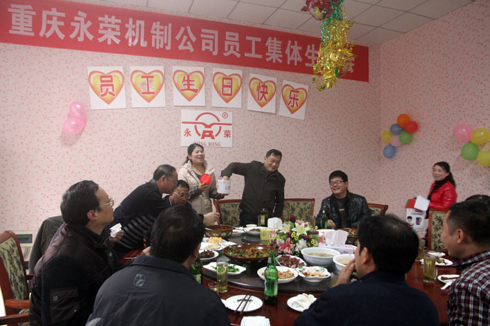 机制公司工会每月为当月生日的员工过集体生日,彰显企业大家庭的温暖与关怀。图为庆生现场