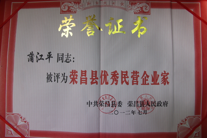 7月5日,在荣昌县召开的发展民营经济大会上,机制公司党委书记、董事长喜获“荣昌县优秀民营企业家”殊荣。