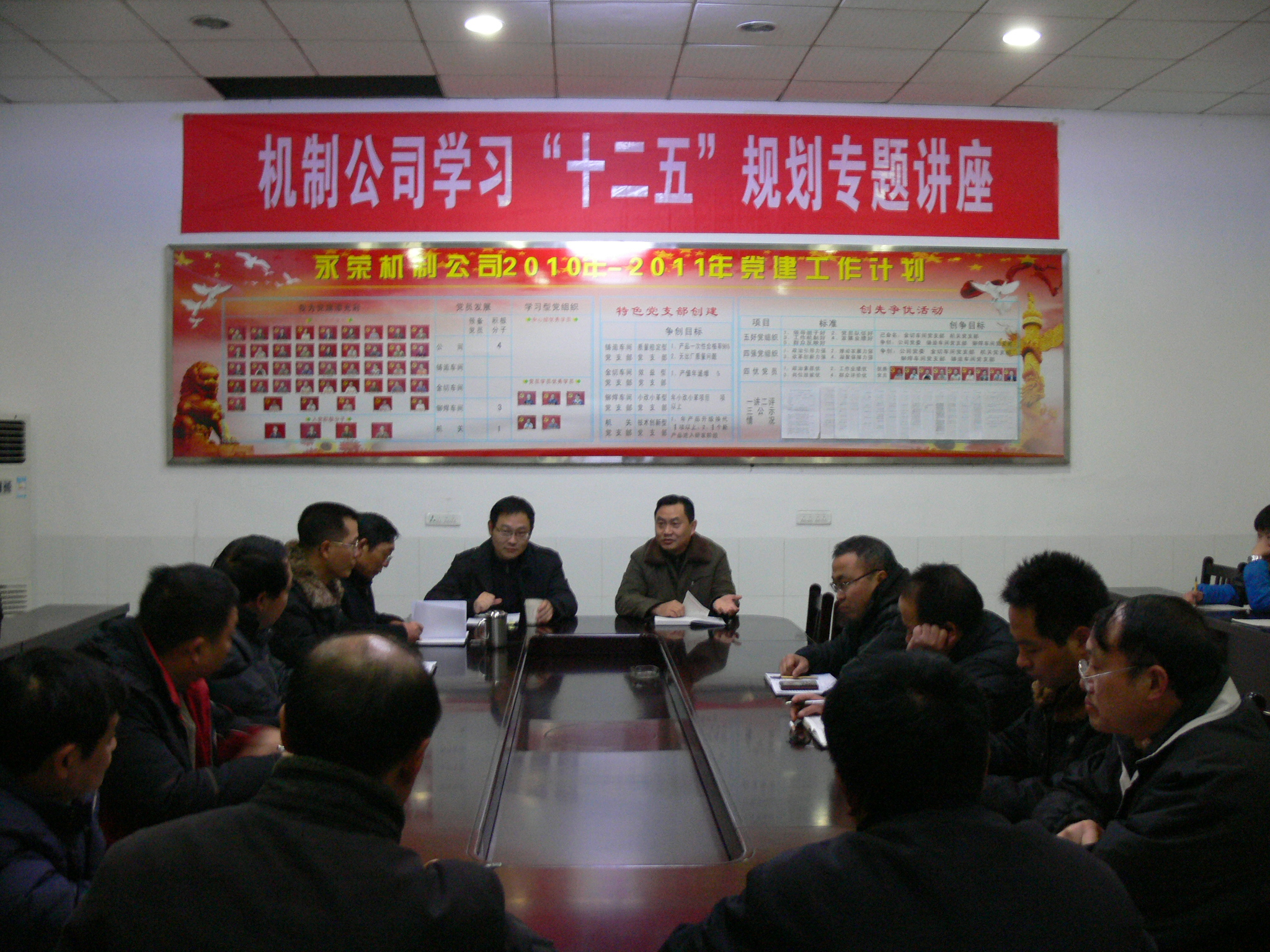 为深入贯彻落实党的十七届五中全会精神,进一步开阔视野,增长知识,统一认识,不断提高公司两级党组织的工作能力和水平,12月24日,永荣机制公司党委举办了学习“十二五”规划专题讲座,邀请荣昌县委党校高级讲师钟崇鹤进行授课。专题讲座由公司党委书记蒲江平主持,公司党委理论学习中心组成员以及公司全体管理人员共24人参加了学习讲座。